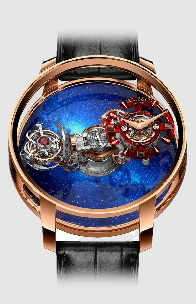 Meaning: The interwoven letters symbolize the fusion of founder Jacob Arabo with the brand, jewelry, and watchmaking; the “&” represents cooperation and connection, reinforcing the full brand name concept of “Jacob & Company.” copy watch Online